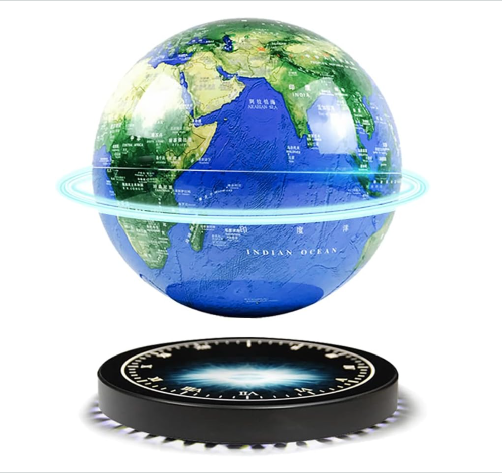 ✅الكرة الأرضية بقطر 6 انش، مع نمط خريطة العالم واضحة على السطح، ستحافظ على الدوران الحر بزاوية 360 درجة وتطفو فوق القاعدة، مطابقة لقاعدة الساعة لجعلها خفيفة وجميلة خاصة في الظلام.
